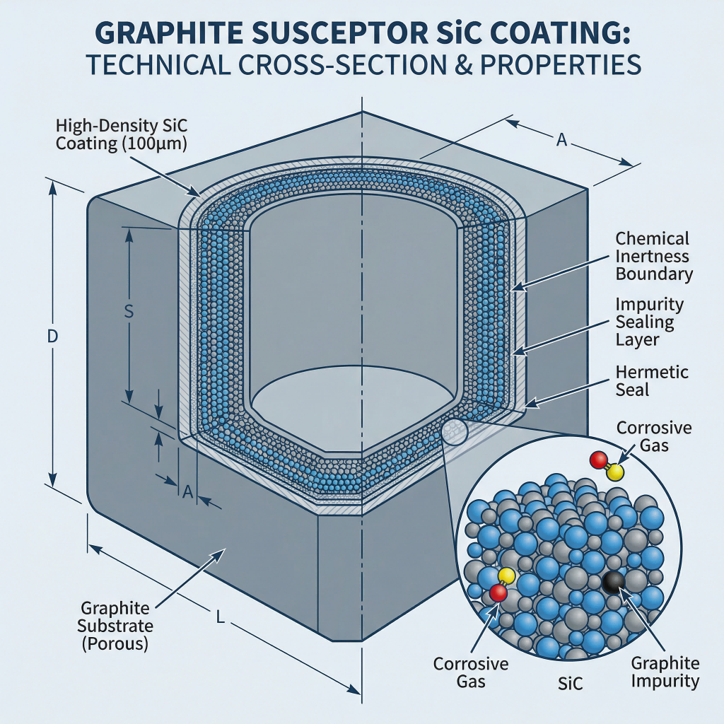 I MOCVD eller epitaksiale processer kræver grafitsusceptorer typisk højtydende belægninger. For eksempel bestemmer tætheden af en siliciumcarbid (SiC) belægning direkte dens evne til at forsegle urenheder i underlaget.